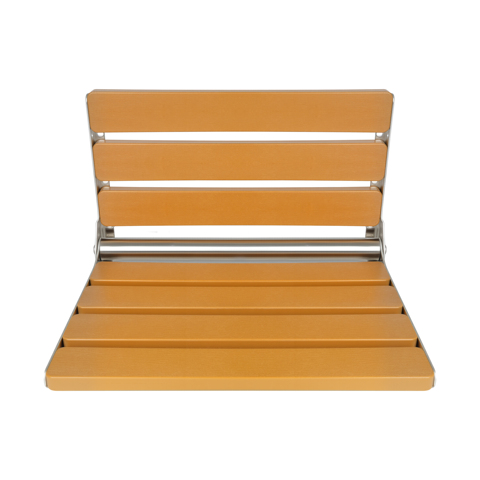Kompakt tasarıma sahip modern, şık, duvara monte, katlanabilir banyo banyo taburesi. Yerden tasarruf etmek için katlanır.